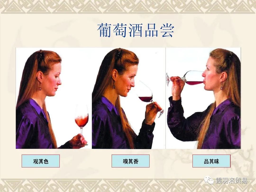 品葡萄酒和品茶有异曲同工之妙,也是分观色、闻香、品尝三个步骤。
