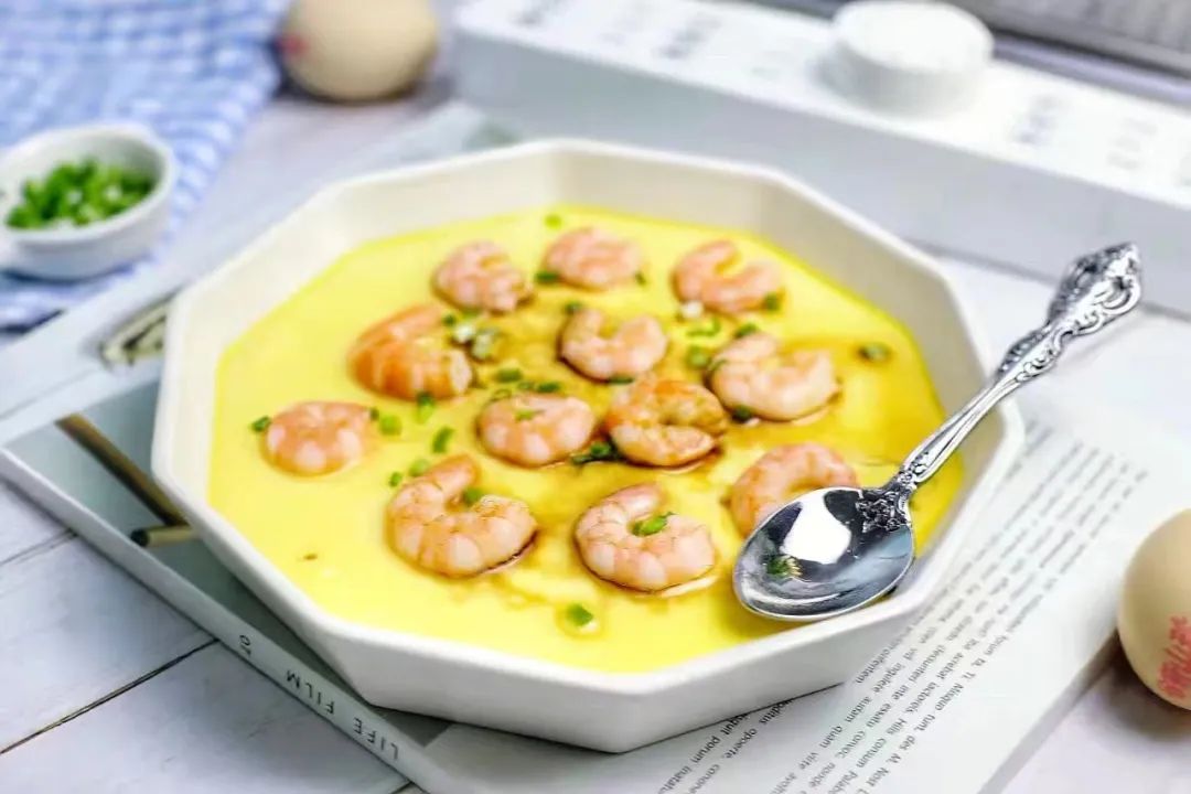 虾仁炖鸡蛋( 鸡蛋20克、虾仁50克)