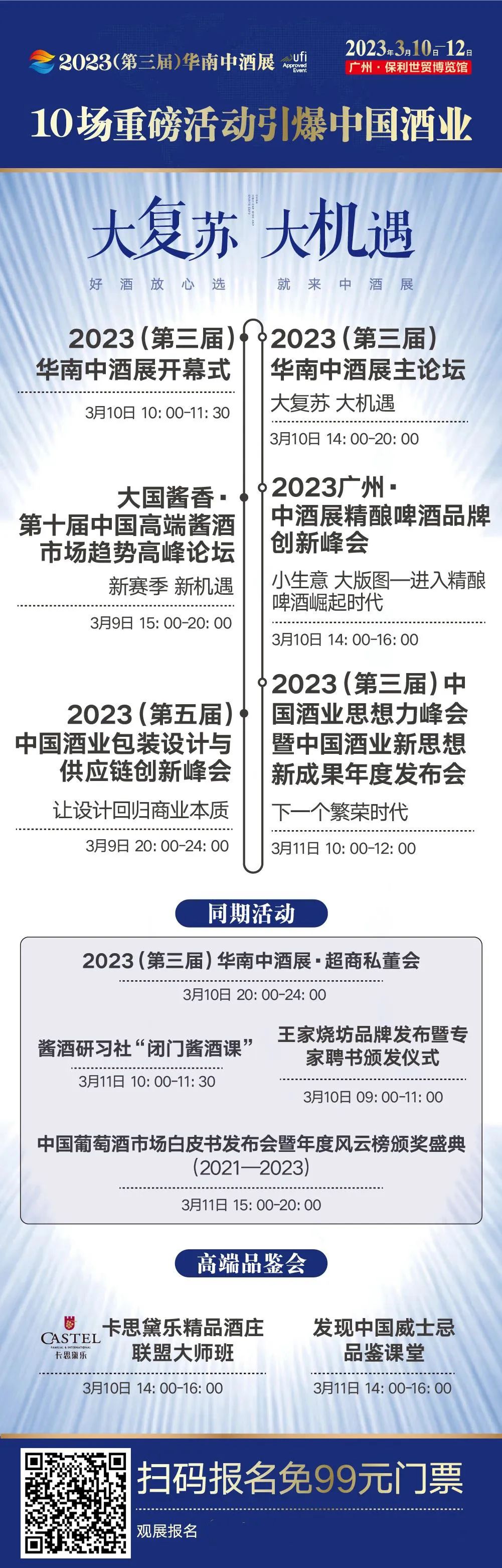 今年的华南中酒展为何会令酒商如此期待?我们整理了本届展会不容错过的8大理由,2023开年抢跑,来华南中酒展就对了!