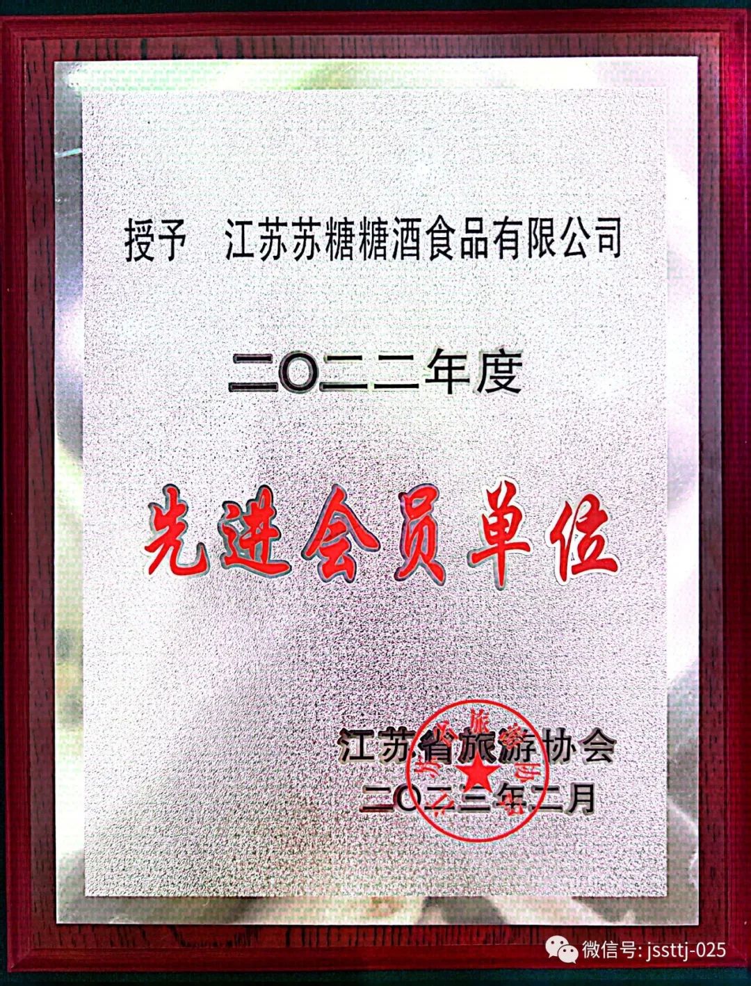 2023年2月27日,江苏苏糖糖酒食品有限公司荣获江苏省旅游协会授予的“2022年度先进会员单位”称号!