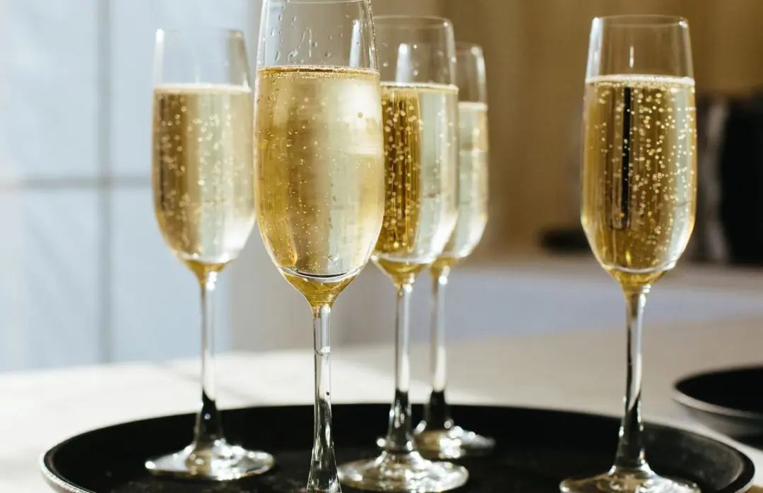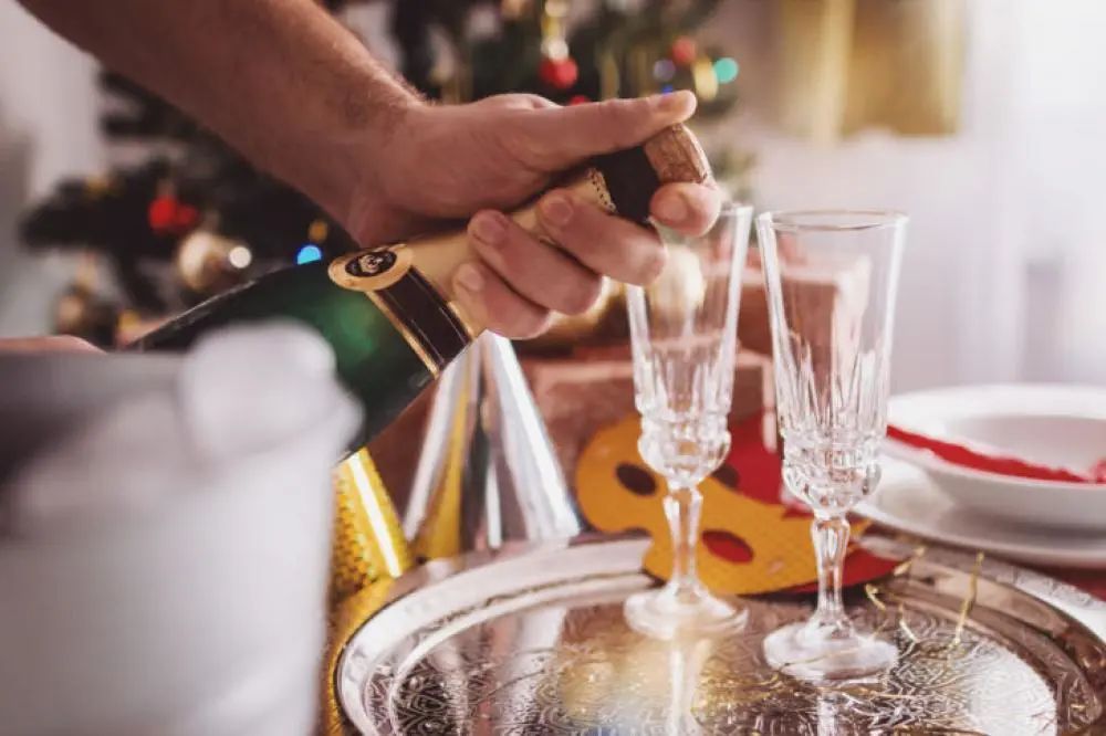 把它存放在阴凉干燥的地方。上桌前30分钟,你应该把香槟或有汽葡萄酒放在冰桶或冰箱中。细长香槟杯可以确保香槟或有汽葡萄酒尽可能保持气泡。