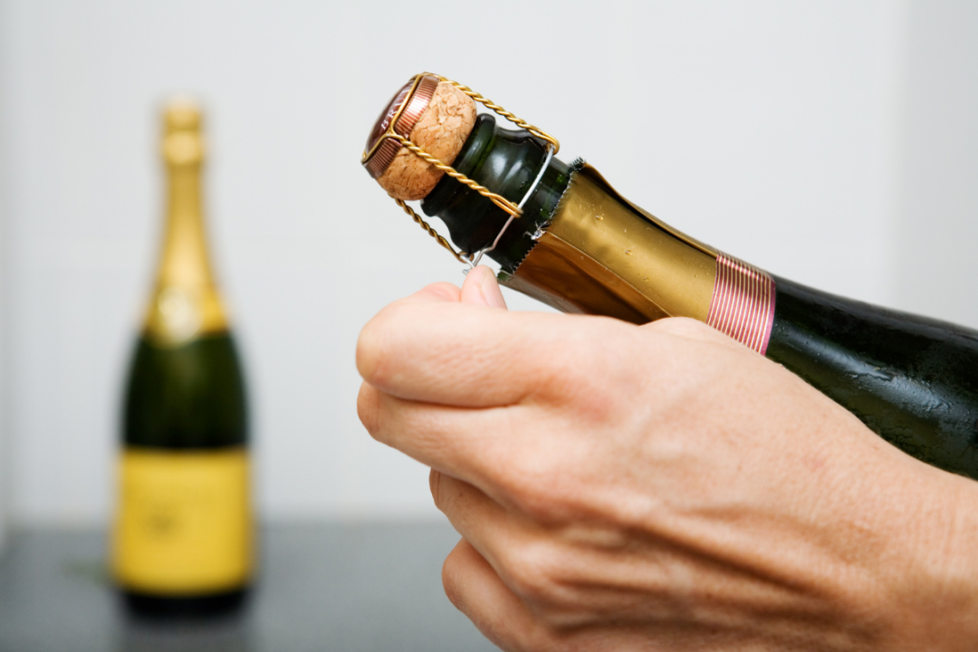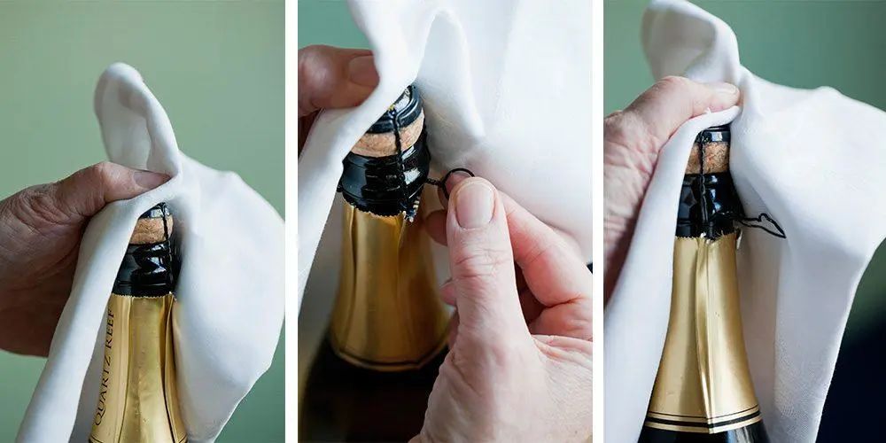 把餐巾或毛巾放在笼子和软木塞上,以防止软木塞弹出来。