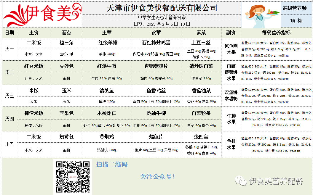 根据天气变化、市场原材料供应情况,菜品会有微调,以下菜谱展示仅供参考,具体用餐情况请以每天实际送餐为准,感谢理解!