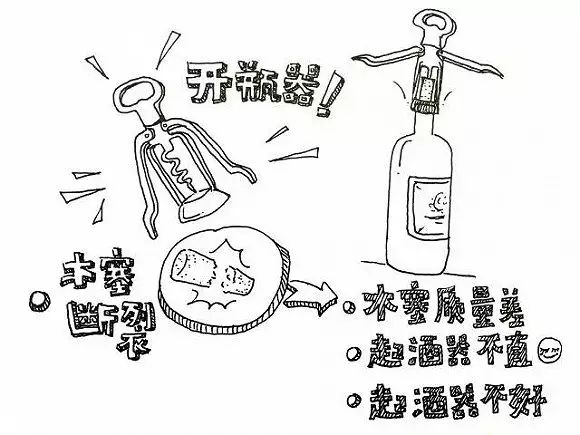 好的红酒瓶装储存时都使用软木塞,软木塞都是橡树的树皮制作的,现在也有用木屑压制而成的,通过软木塞的干湿程度能够知道红酒的状况,这也是红酒存放时要横向放置的原因。使用起酒器时要注意起酒器和瓶身保持垂直,螺丝不要旋到木塞底部,接近就好,不然木屑落入酒中会影响酒的口感,甚至会让酒的味道变臭。