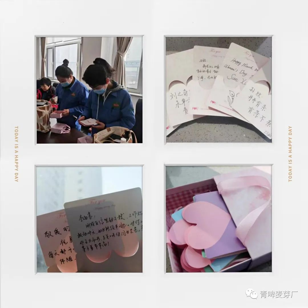 多重身份,多面印象。在前期的准备活动中,麦芽厂工会组织女职工所在部门的男同志,用贺卡写下了对"铿锵玫瑰"们的多样印象。以"印象+祝福"的形式组成"印象盲盒",保持一份独属于她们的神秘。作为一份特殊的礼物在座谈会当天送至各位女职工的手中,意在打开盲盒的瞬间,亦收获了不同的自己、不同的精彩。