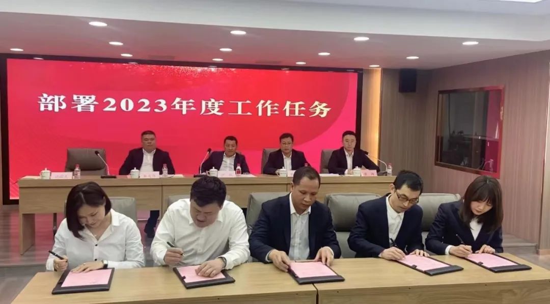 各业务部门与公司营销总监沈辉东签订2023年目标任务书,立下了使命必达的庄严承诺,展现了坚决完成各项业务指标的决心和信念。同时,在公司纪检委员、副总经理林大炜的带领下,部分员工代表上台签订廉洁从业责任书,引导全体职工要时刻绷紧拒腐防变之弦,做到自重、自省、自警、自励。