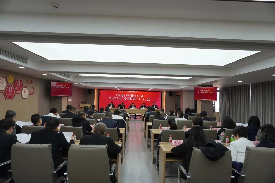 3月7日下午,中泉酒业公司召开2023年第一次全体职工大会,全面总结2022年度公司发展成效,表彰优秀先进,审议相关议题,系统部署2023年工作任务,动员全体干部职工团结一心、踔厉奋发,凝心聚力推动公司发展实现新跨越。中泉集团党委委员、副总经理郭加圣,中泉集团党委委员、副总经理兼中泉酒业公司党支部书记、执行董事、总经理尹刚及中泉酒业公司全体员工参加会议。