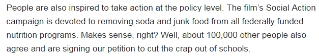 10万人签写请愿书,要求在政府资助的学生营养项目中移除垃圾食品和苏打水!