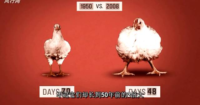 在基因工程、抗生素饲料等等因素的影响下,小鸡长到2.5kg只需要7周半的时间,鸡农们无法抵抗这一数字的诱惑。
