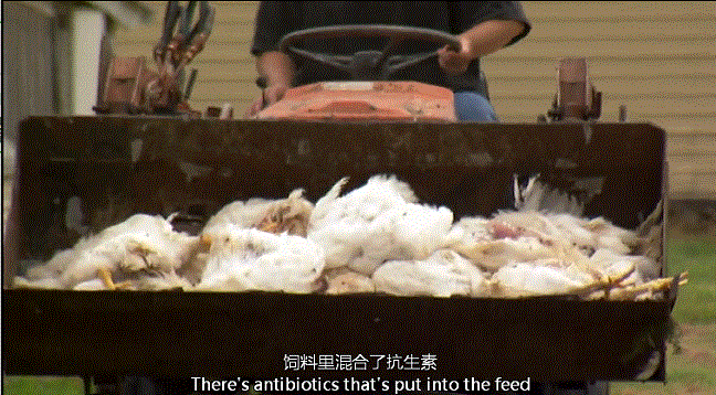 鸡能够快速生长的另一个原因是饲料里混合了抗生素。