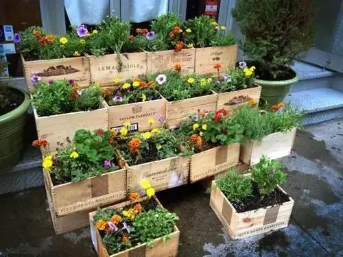 再也不用为配置大大小小的花盆而烦恼了,看腻了毫无个性的塑料花盆,我们不妨用葡萄酒木箱来换换口味吧!