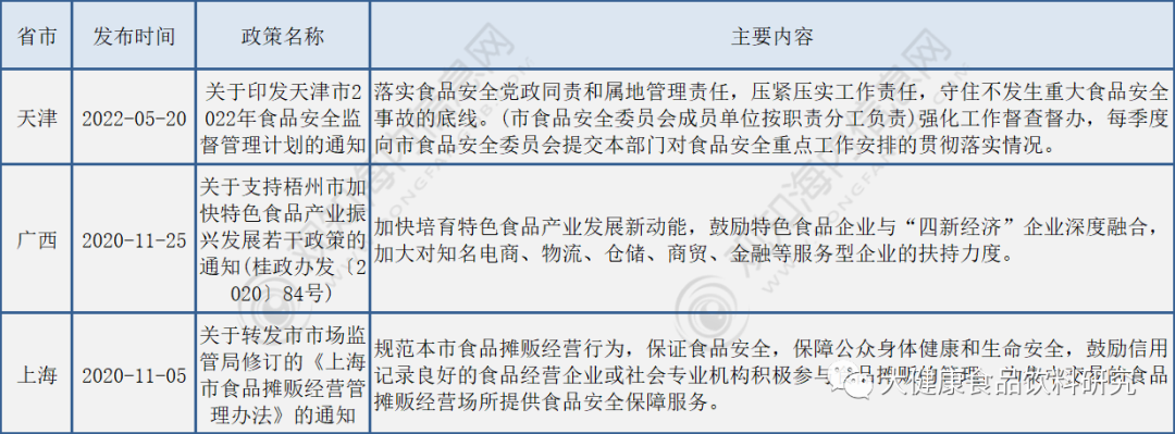 地方层面食品饮料行业相关政策