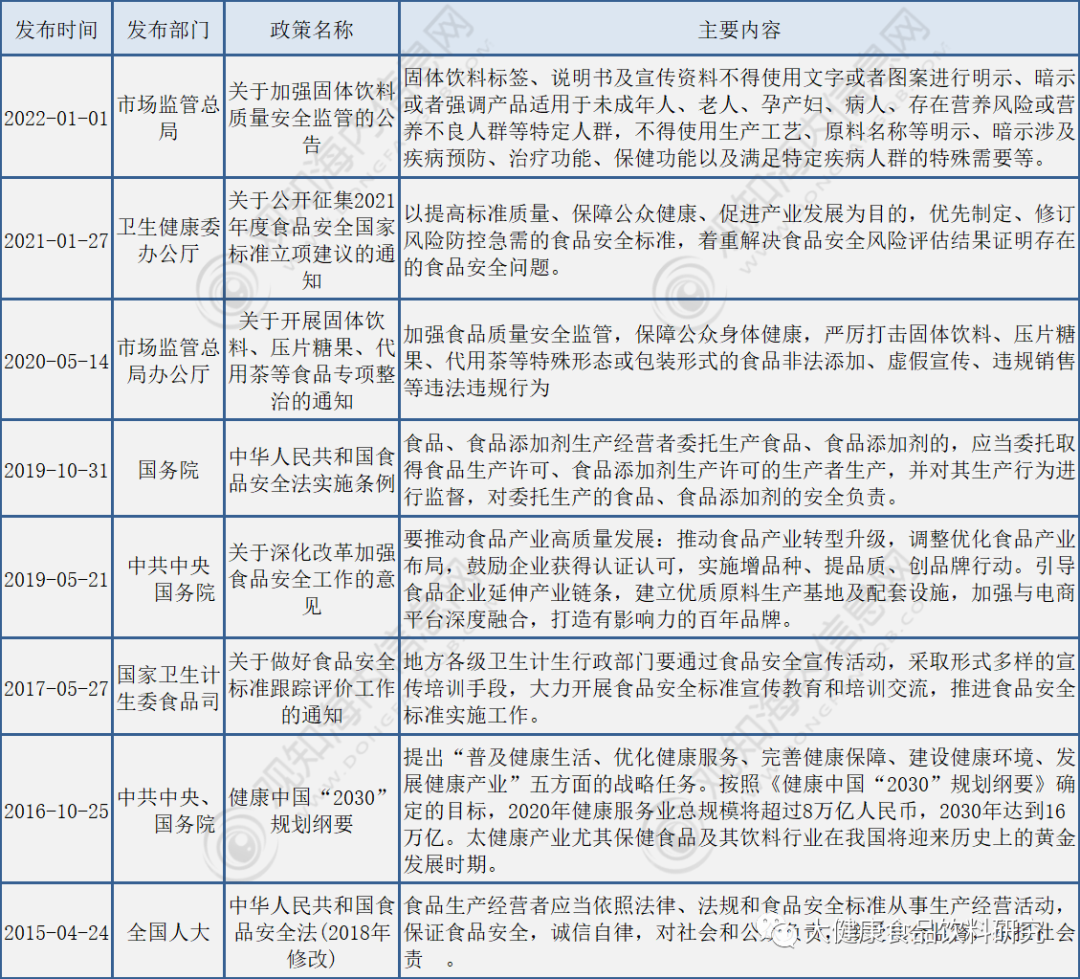 国家层面食品饮料行业相关政策