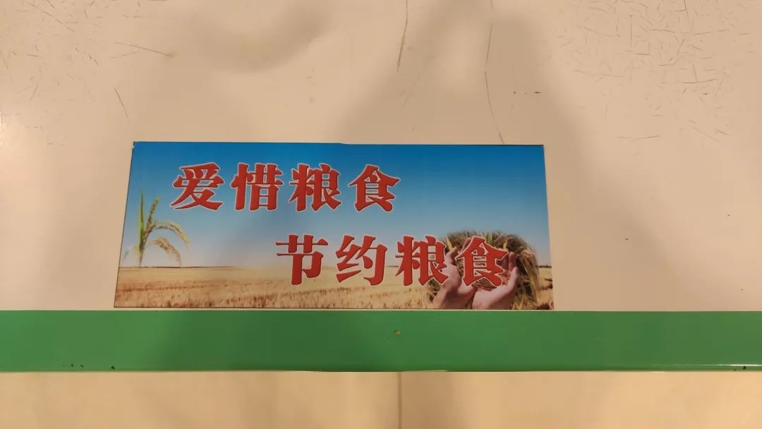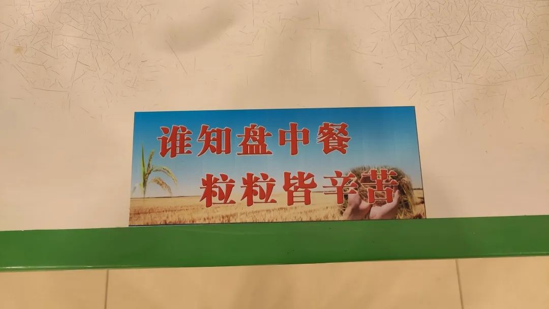 “爱惜粮食,节约粮食”“谁知盘中餐,粒粒皆辛苦”在食堂大厅中、售饭窗口、就餐区的餐桌上等设置醒目的提倡厉行节约、反对浪费、节约粮食、按需就餐的提示牌、宣传画、标语共20处,大力开展“光盘行动”,营造浓厚氛围,引导广大干部职工养成节约粮食的良好习惯。