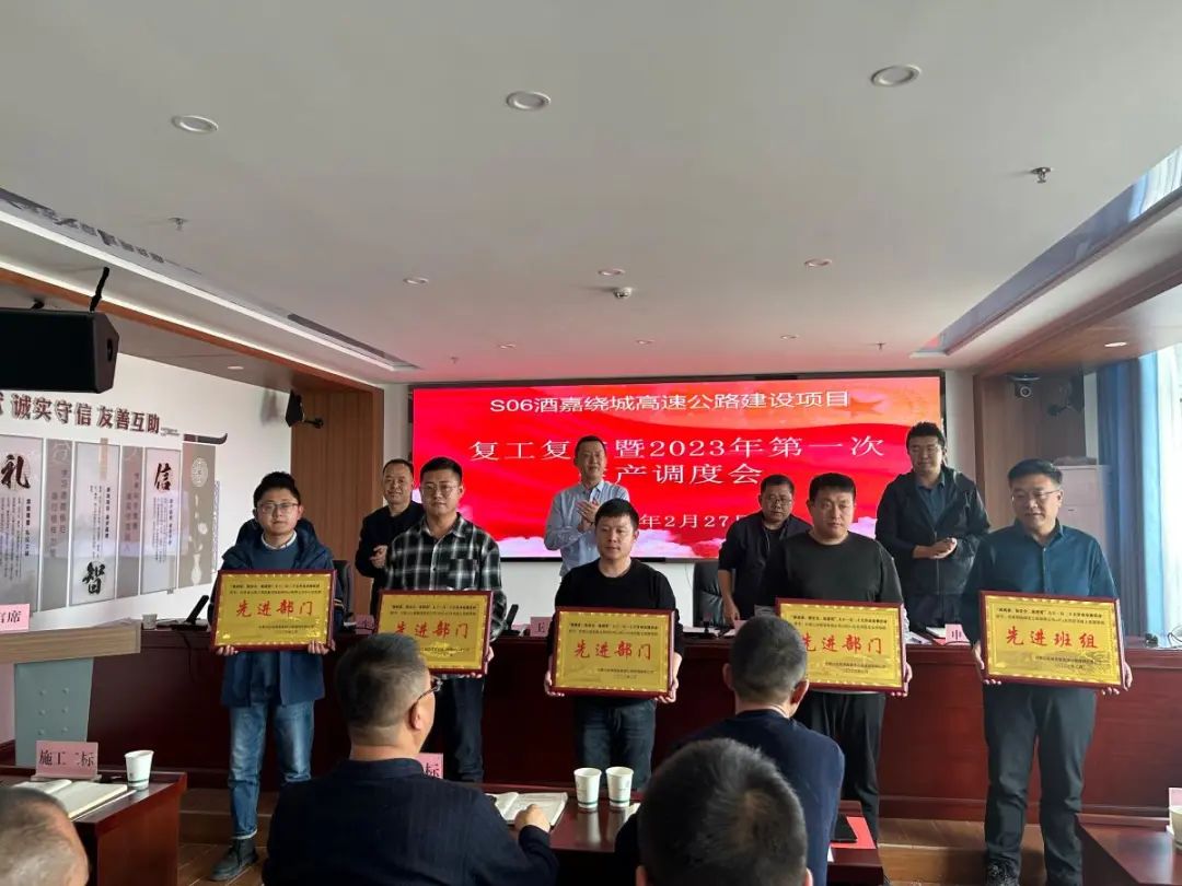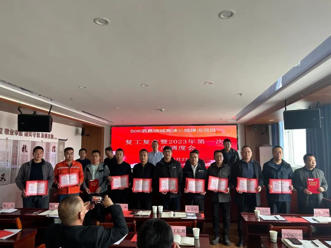 近日,在酒嘉项目公司组织召开的复工复产暨2023年第一次生产调度会上,检测中心道路所酒嘉中心试验室被评为“先进部门”,刘齐祥荣获“先进管理者”荣誉称号,李斌斌、张军卫荣获“先进个人”荣誉称号。