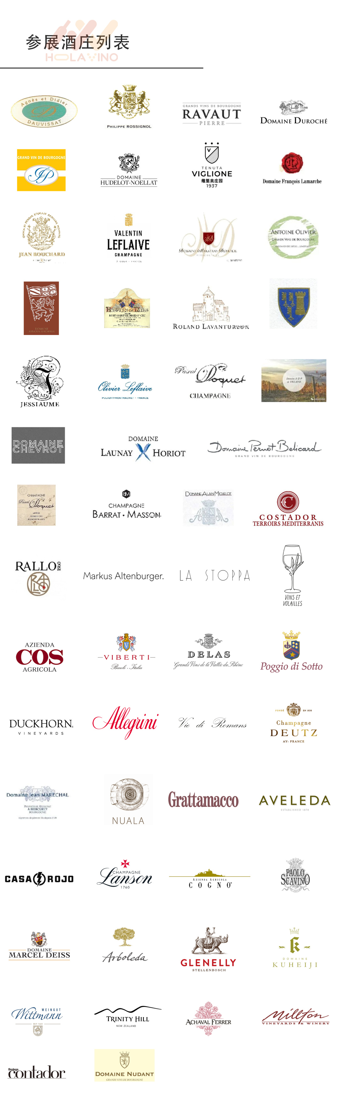 目前,西鸽、马德拉之家、吉哈伯通、KWV凯樽汇、蓝宝堂、广州小红马、上海华饮、Crus&Vintages、CWS史瓦仕、天津百年藤、利思、钰之锦、吉马集团、爱诺特卡ENOTECA、上海卡聂高、UG Bordeaux、冬趣等,200+参展商已确认参加2023 HOLAVINO葡萄酒主题展。
