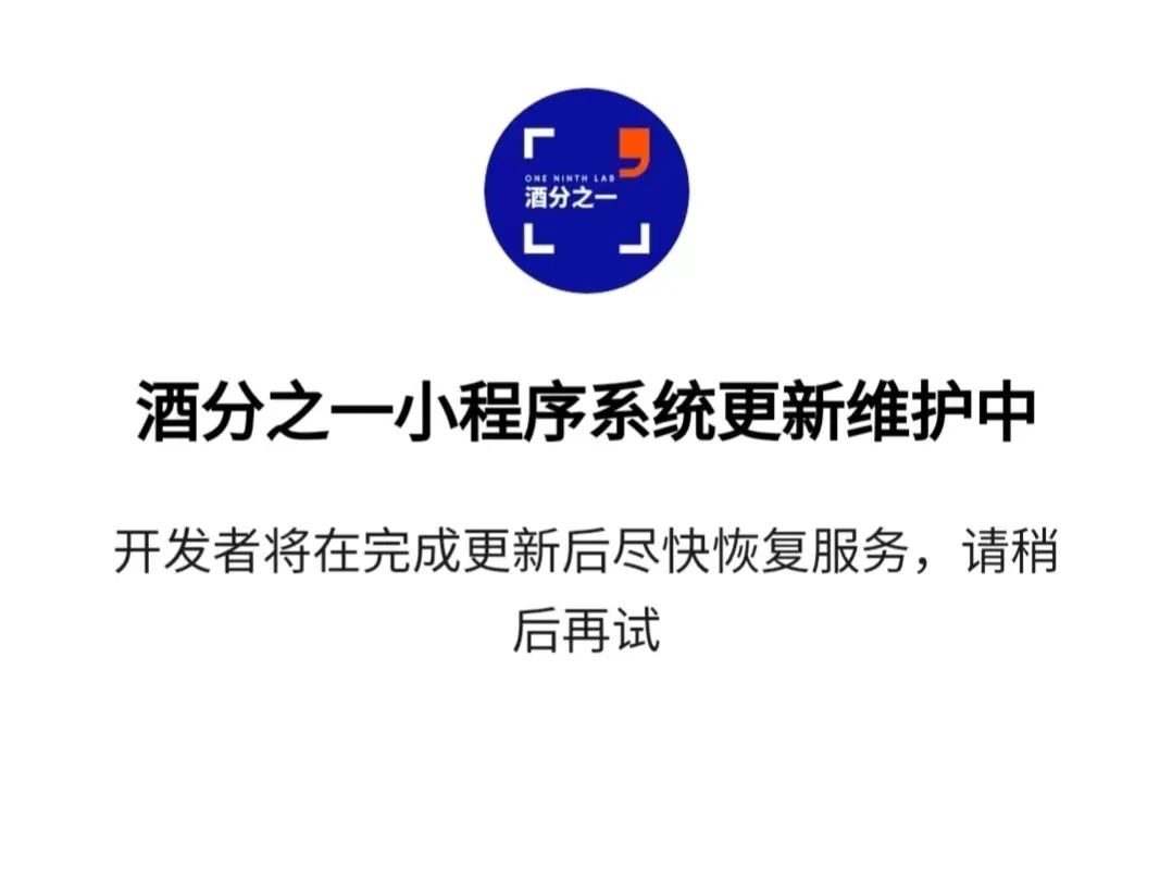 微信公众号最近一次更新是2022年10月28日,发布内容为万圣节促销活动,至今已近5个月没有发布任何动态,而此前“酒分之一”平均每月会有两次动态发布,包括产品上新、节日活动等品牌动态。另外,酒分之一在微信平台的购酒小程序也进入了更新维护状态。