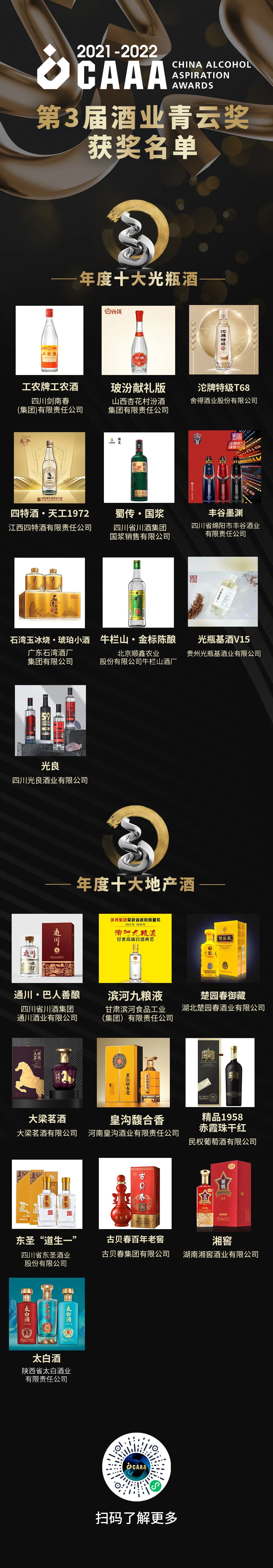 随着名优酒企纷纷入局光瓶酒以及消费观念的转变,未来光瓶酒将进入价格和销量双增长时代,透过青云奖“年度十大光瓶酒”,我们正在见证此刻光瓶酒最美好的发展时期。