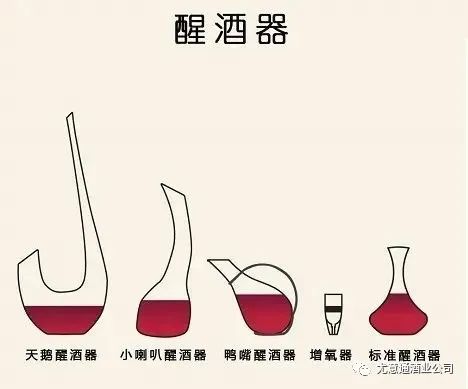 醒酒器的形状大多底部宽大,颈部细长,也有因为酒的特点和出于艺术效果而设计的形态各异的醒酒器。醒酒器能把陈年的葡萄酒 “唤醒”