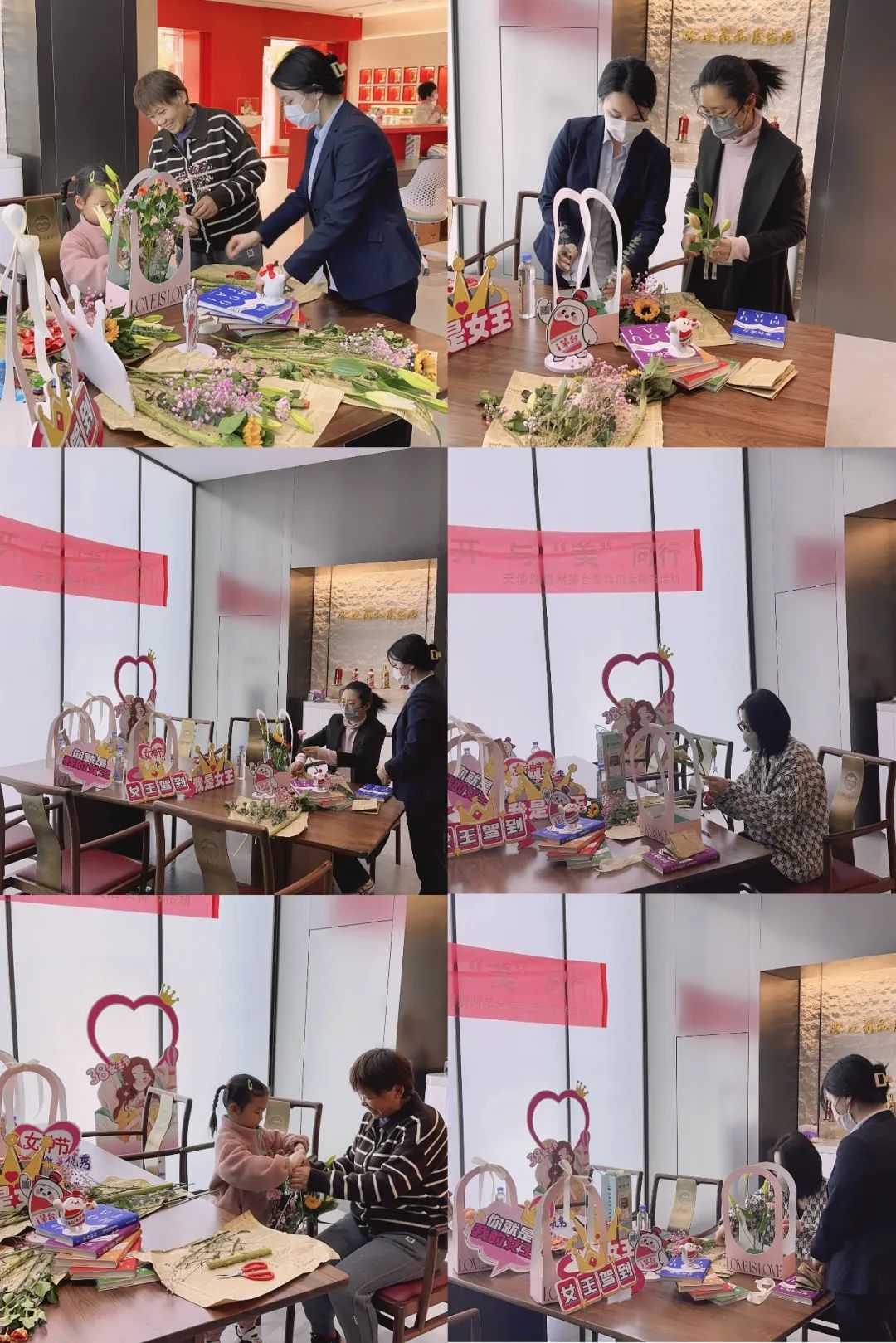 活动中,我们邀请到了不同年龄段的女神们:有可爱的小朋友,她想插花送给她的奶奶。有两位女士,一位插花是想送给自己的母亲,一位是送给自己。还有一位男士,是想送给自己的爱人。插花现场、工作人员分享插花知识,从花材、配色、技巧等方面带领大家现场自主插花,让女同胞们体验插花乐趣的同时,感受插花艺术的魅力。