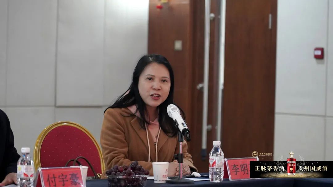 原茅台酒厂高级勾调师、品评师李明英,国家一级品酒师、高级勾兑酿造工程师、中国酒都·酱香酒匠付宇豪,国家一级品酒师、贵州省白酒评委邹明鑫,国家一级品酒师、勾调师、贵州省白酒评委邓昌伟等专家也都相继发言,对国威酒业的发展提出宝贵建议。专家们对国威酒业的工艺表示充分的肯定及赞扬。