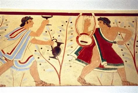 虽然关于伊特鲁里亚人(Etruscans,意大利半岛上比希腊人和罗马人更早的葡萄酒文化)的大部分信息都来自它们的死敌——希腊人的记载,但如果将这些记载与伊特鲁里亚人留下的艺术作品一同研究,可以推断出,在伊特鲁里亚男性和女性可能在社会的大部分方面享有平等的权利,包括财产所有权和葡萄酒饮用。