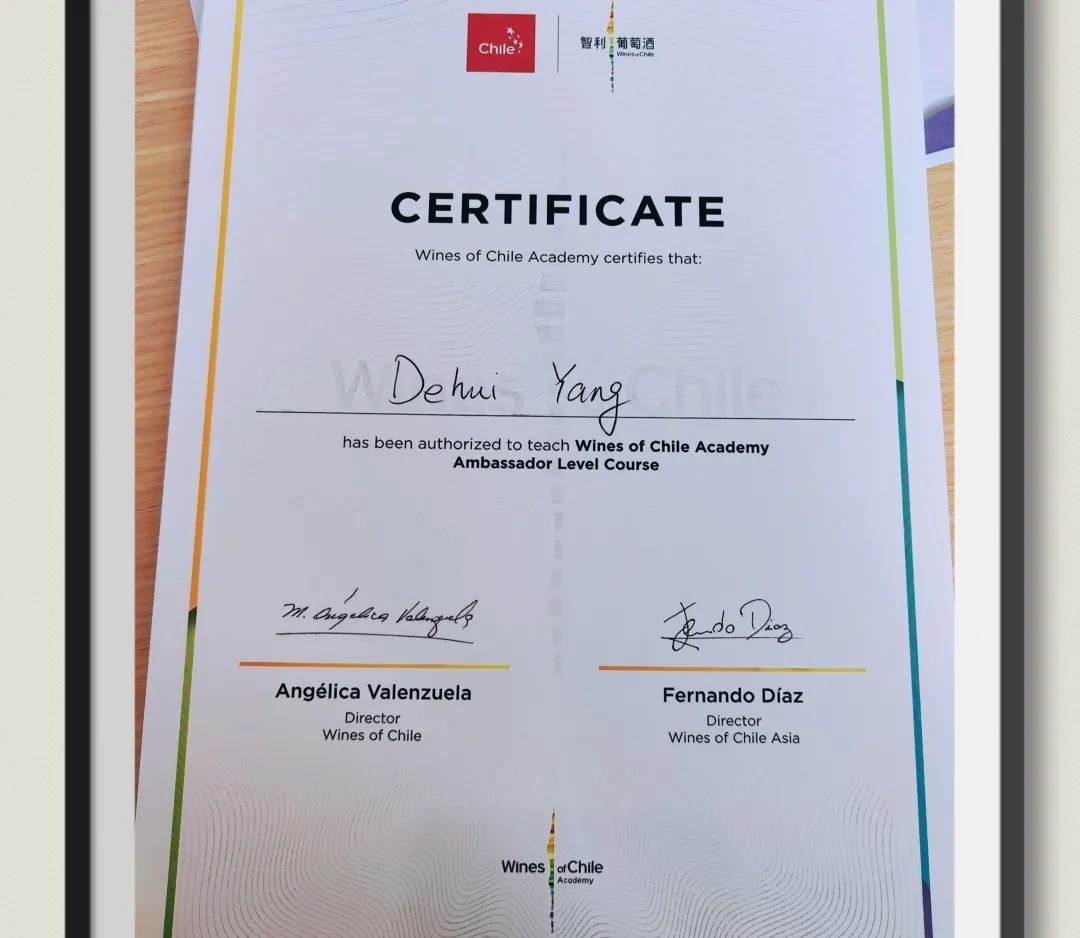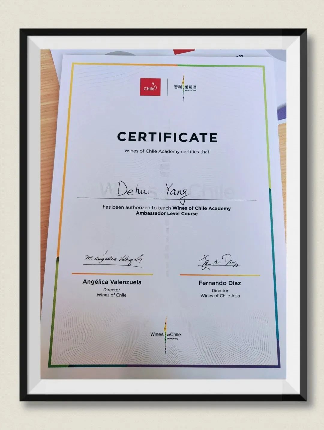 晚宴结束后,可获得《智利葡萄酒协会》认证证书!
