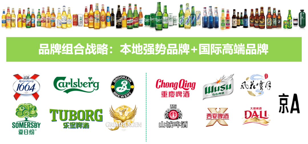 随着重庆啤酒与嘉士伯在2020年完成资产重组,前者也成为了嘉士伯在中国运营啤酒资产的唯一平台。嘉士伯旗下的乌苏、1664、乐堡、嘉士伯、风花雪月、夏日纷等品牌进入了重庆啤酒的品牌组合,与重庆和山城品牌一起,形成了“本地强势品牌+国际高端品牌”的品牌组合。