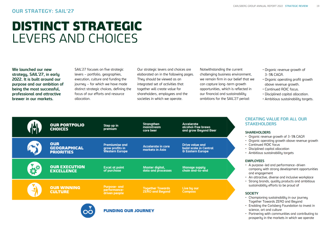 “于2016年启动的扬帆22战略(SAIL’22)成功加强了集团的品牌和区域组合,同时,作为完善的‘资助征程’(Funding the Journey)文化的一部分,集团保持对成本和现金的高度关注。”嘉士伯提到。