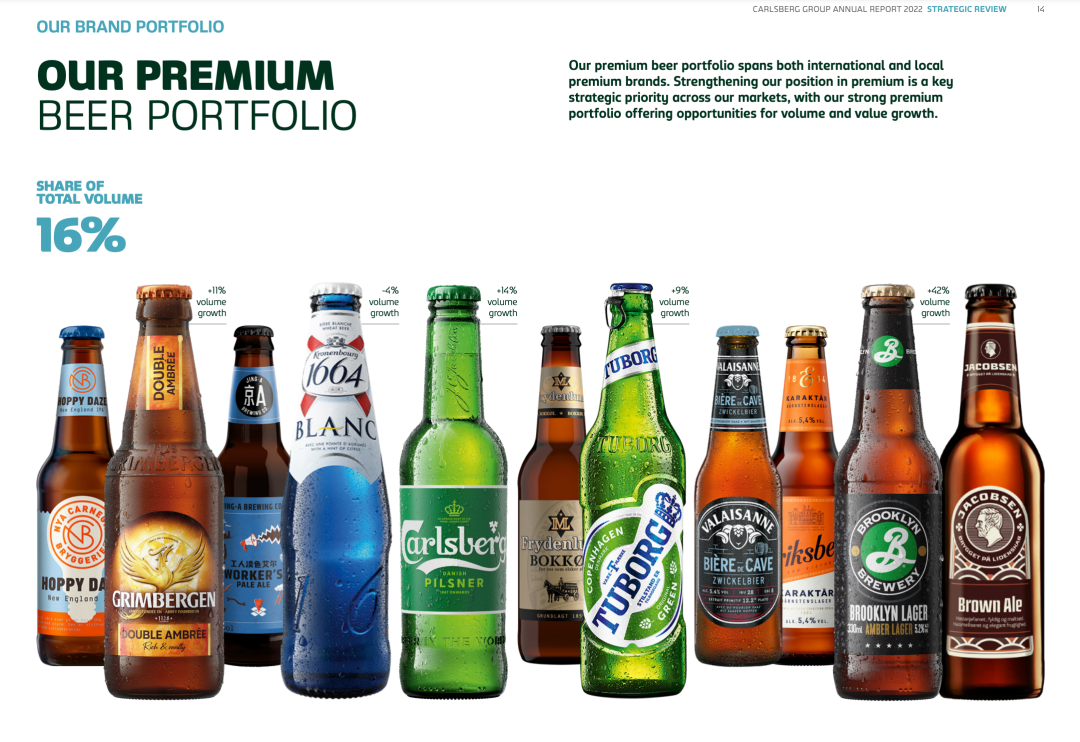 2022年,中国是嘉士伯全球最大的单一市场,为其贡献了137.81亿丹麦克朗(约合136亿元人民币),而一年前的119.46亿丹麦克朗。其中,销量增长了2%,每百升的收入增长了3%。