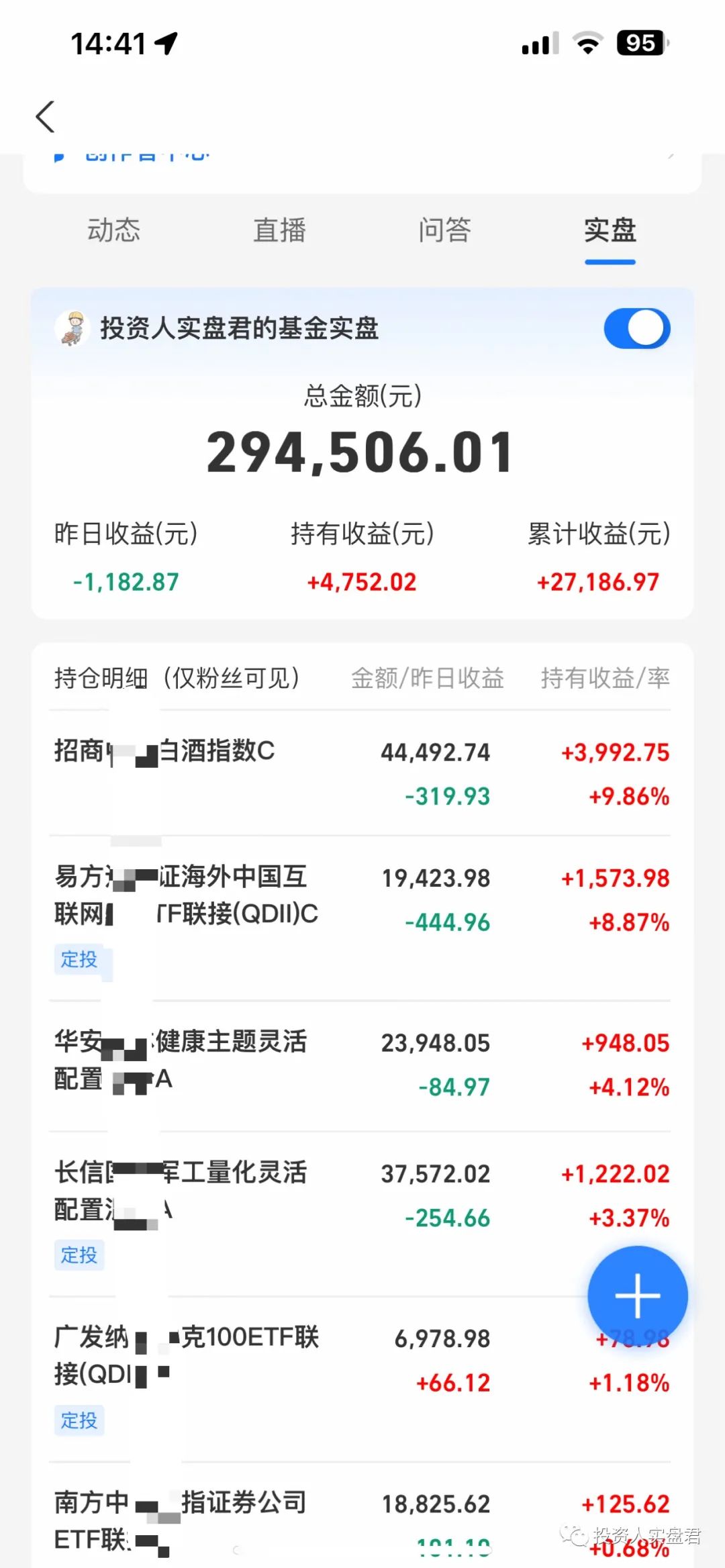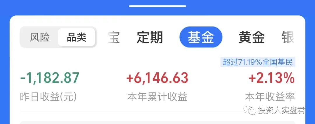 我的实盘,今年年收益快跌完了。好多博主不敢晒收益,晒持仓,晒年收益,我是都晒,粉丝们要求啥我晒啥,实盘也公开在了,在某宝搜索同名“投资人实盘君”能搜到。