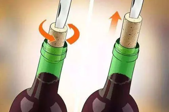 刀片不能太宽,也不能太窄,要刚好可以扎进软木塞中,但又不会划破软木塞的边缘。将刀片扎入软木塞的中央,尽量避免划破边缘。一手握住瓶颈,缓慢转动刀柄,带动软木塞一起转动;转动时力度不能过大。然后将刀柄缓缓向上提起,慢慢拔出瓶塞。