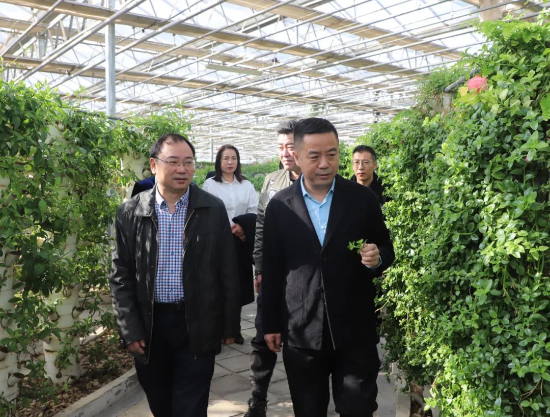 座谈会前,冯明陪同陈辉一行参观了浩彤现代农业示范园,了解了园内无土栽培、立体种植等先进技术。