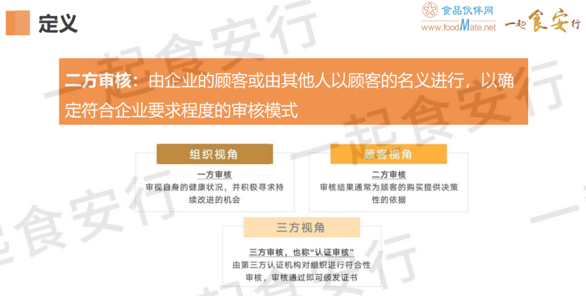 总之,二方审核在食品行业中扮演了重要的角色,越来越多的甲方使用二方审核来保障供应链的安全。了解二方审核,不论是帮助我们完成客户审核,还是提升自己的能力,都是很有益处的。