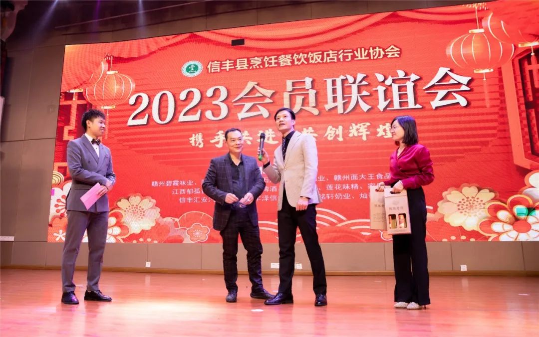 2023年3月9日下午2:30,信丰县烹饪餐饮饭店行业协会在客家汇四楼召开了二届四次会员大会。县委常委、统战部长刘宁亲自到会并作了重要讲话,县商务局局长李志鸿出席了会议,殷玉华副局长在大会上作了发言。县文广新旅局、县总工会、县民政局、县市场监督管理局派代表参加了会议。会长罗会斌代表协会作了工作报告,执行副会长刘春光主持大会,有180多名嘉宾和会员参加了大会。刘宁常委指出,县委县政府把培育新业态,发展新商业模式激发市场活力列为今年政府工作报告决战“三产旺起”的重点工作,今年还将发放500万的文旅商贸消费券,我县餐饮行业发展将迎来一个全新的发展机遇。同时,刘宁常委还对全县烹饪餐饮饭店行业协会提了四点希望。一是希望协会发挥桥梁纽带作用;二是希望会员发挥群智群力作用;三是希望厨师发挥精湛厨艺作用;四是希望发挥创特色树品牌的带动作用。最后,刘宁常委要求协会紧紧围绕服务信丰经济发展大局,积极面向大众消费需求,不断整合资源,推陈出新,丰富菜品,创新服务,提档升级,为我县商贸经济繁荣发展做出更大贡献。罗会斌会长代表协会做了工作报告。报告实事求是地总结了一年来的工作,并对新的一年协会工作作了精心布置和安排。他强调:协会将继续贯彻党的二十大和中央经济工作会议精神,团结全体会员,当好融湾排头兵,继续做好协会内部组织建设;加大力度,挖掘、整理,开发具有信丰本地特色菜品;定期组织岗位练兵大比武;走出去请进来,不断丰富团建活动,增强协会的凝聚力,把协会办成会员活动之家。会上,常务副会长曹春风通报了一年来的财务收支情况。大会表彰了陈文兵、朱华生、吴贺华、刘鑫、李业春、王长美、毛秋红、彭红军、杜必强、刘孝龙十名为协会工作无私奉献的先进会员,县商务局殷玉华副局长、文广新旅局执法队长肖旭中、总工会、民政局、市场监督管理局代表、会长罗会斌为先进会员颁奖。会后,举行了丰富多彩的会员联谊会,演员们的曼妙舞姿、激昂的歌声把宴会不断推向高潮;抽奖环节妙趣横生,精彩连连;鱼王争霸赛特金奖、金奖荣誉证书的颁发,获得了全场的阵阵掌声。罗会斌会长代表协会致祝酒辞,特别感谢赣州碧霞味业、厨邦调味品、麦饭石酒业、茂盛酒业、赣州面大王食品、凤球唛、江西郁孤台饮料公司、百威啤酒、雪津啤酒、莲花味精、家乐鸡精、信丰汇安汽车检测、信丰泽信食品、信丰铭轩奶业、灿哥商贸等企业对本次大会的鼎力赞助。整个大会达到了预期的效果。