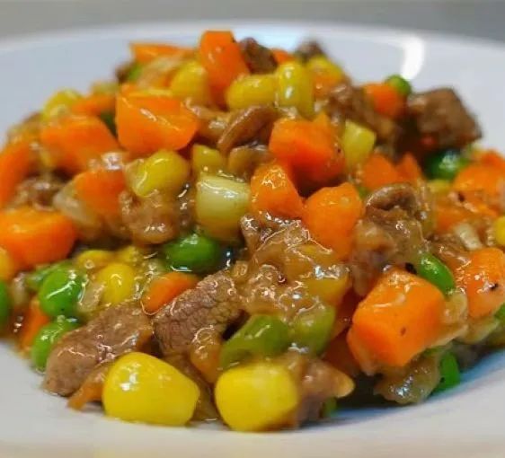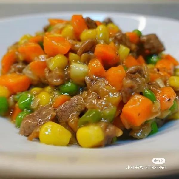 这是一道幼儿非常喜欢的菜品,有牛肉、蔬菜粒和彩椒,牛肉营养丰富,富含优质蛋白质,且含有铁、钾等各种矿物质,彩椒中膳食纤维含量高,有益于肠道益生菌生长。颜色搭配上让整道菜看着非常有食欲。