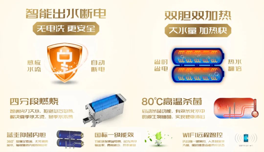 奥克斯热水器始终把安全放在首位,自主研发及主打的出水断电及双胆速热电热水器在众多品牌与产品中脱颖而出,占有一席之地。安全有保障,畅洗大水量,全方位从用户角度出发,让用户洗得放心更舒心。一级节能/远程智控/高温杀菌/健康活水功能电热水器;零冷水/四分段/变频增压/无氧铜防腐的室内外燃气热水器等系列产品也一直备受消费者的青睐与喜爱,更有众多适应消费需求推出的一级冷凝/零冷水/防冻壁挂炉、即热式无水垢水电分离电热水器、多功能一体的集成即热淋浴屏……