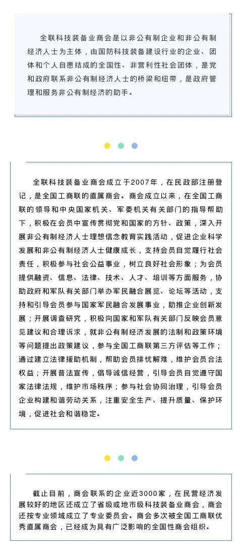 全联科技装备业商会是广州两用技术装备成果交易会的主办单位,已成功举办了三届两交会,赢得了部队、政府、企业及各相关单位的充分肯定和高度评价,取得了良好的政治社会效应。