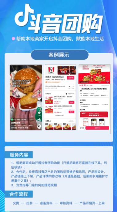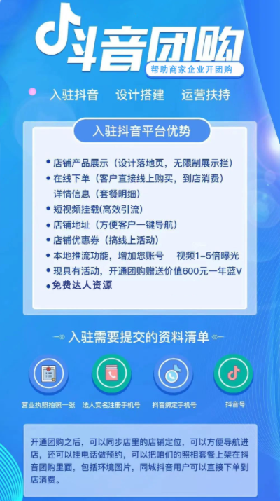「团购」是抖音官方推出的营销工具,只要是开通蓝v,不违法,不违规,不涉及黑产的套餐都可以添加。