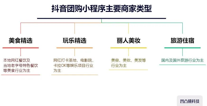 在抖音上架团购,用户购买路径是通过短视频或者直播等内容吸引用户,再完成线上购买到线下体验流程,是主动推荐,也是不同于其他生活服务平台。需要用户去搜索。