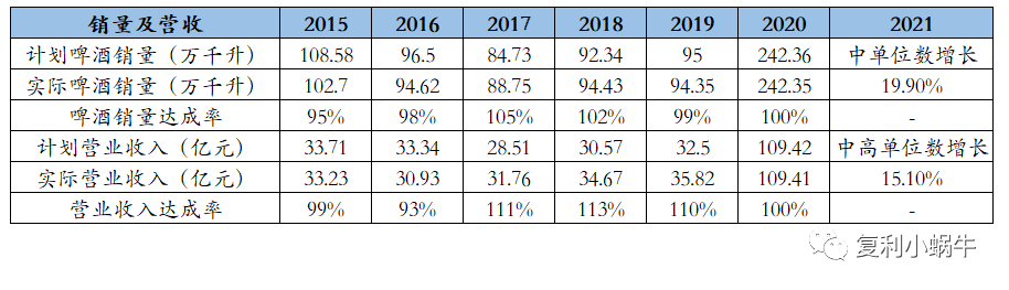 | 4、重庆啤酒历年经营计划执行情况 |