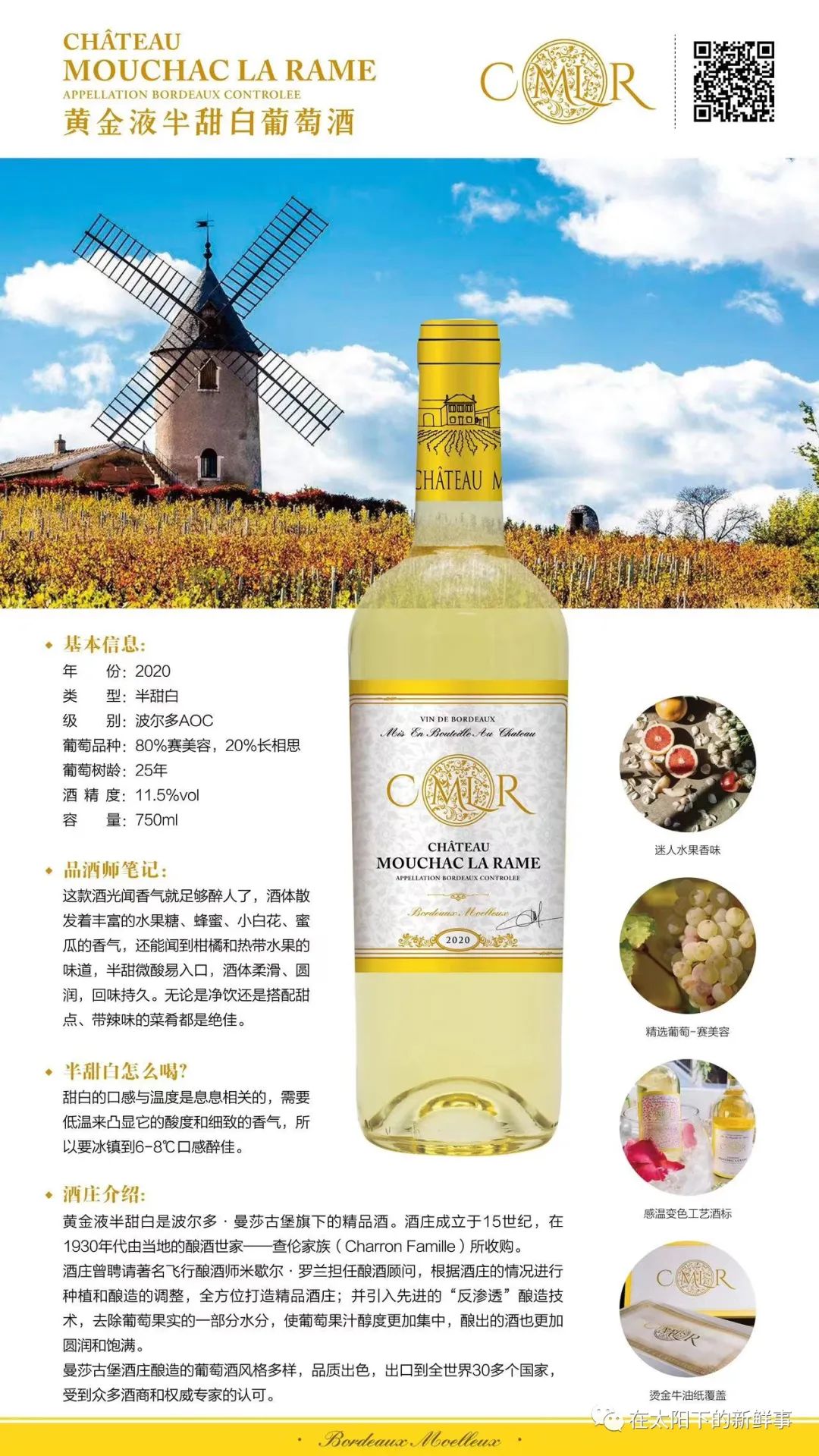 在满目青翠的草地上,和朋友一起席地而坐,边欣赏大好春光,边啜饮一杯有着青春气息的果香型干白,让人感觉清风拂面的同时,也为你驱散掉所有的春日困倦。