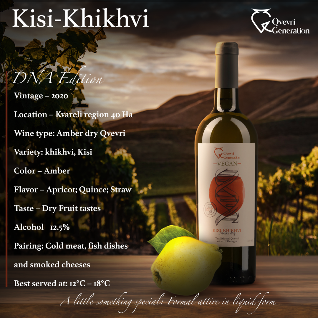 格鲁吉亚Qvevri陶罐干白葡萄酒。口感圆润、平衡,微单宁,香气复杂。干白葡萄酒形成特有的琥珀色,口感中微微的单宁会随着陈酿时间逐渐变得更精致,成为独特而平衡的白葡萄酒。