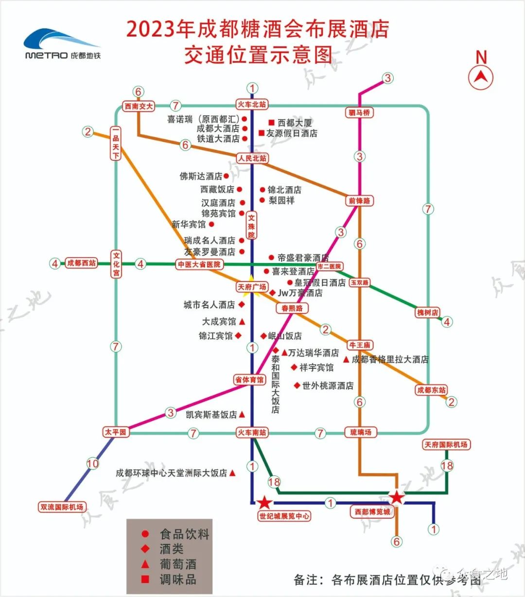 简介:五星级酒店,地处成都市核心的骡马市商圈黄金地段,周围集中6家布展酒店,总高42层,食品饮料综合专区酒店。1-7楼为展厅,9-15楼为房间设展,16-42楼为客房。整体布展呈“回”字型,便于会期客商循环逛展,离传统热门食品、饮料布展酒店较远,逛展便利性略受影响。