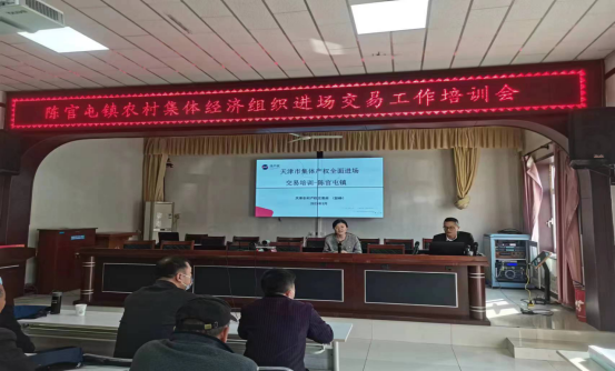 培训会上,天津农村产权交易所主管彭峥,从农村产权交易的意义,产权交易的类型、进场流程和典型案例等方面,讲解了集体产权进场交易的政策、流程以及进场交易的优势,并结合陈官屯镇集体产权的进场交易情况分析了进场交易的必要性,阐述了进场交易对实现农村集体资源保值增值的意义。