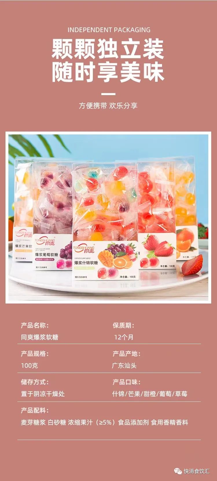 产品:同爽果汁爆浆软糖