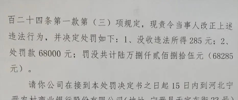 依据《食品安全法》第一百二十四条第一款第(三)项规定,宁晋县市场监督管理局对其作出处罚如下:1、没收违法所得285元。2、罚款68000元;罚没共计陆万捌仟贰佰捌拾伍(68285元)。