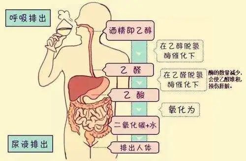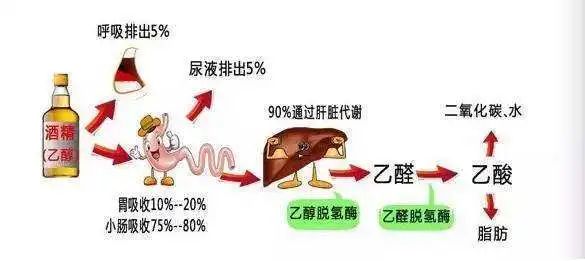 酒局是很多成年人躲不过的,绝大多数人都不太能喝酒,要么面红耳赤,要么脸色煞白。尤其是喝白酒,由于酒精度数非常高,喝一点就有点吃不消。所以,对于很多人来说,快速解酒简直就是刚需。在日常生活中,也流传着很多“土方”。比如:喝浓茶或者蜂蜜水来解酒,或者在酒精加入碳酸饮料。再比如:使用其他的非甾体抗炎药或者解酒药来解酒。以上这些“土方”事实上都是无效的,有些只是让你舒服点,但要付出胃出血和肝损伤的风险。有些不仅不会解酒,反而会加剧醉酒。之所以以上方法都不行,是因为这些方法没有解决两个关键问题:1. 提高分解酒精的酶的活性和数量;2. 减慢酒精的吸收速率。那为什么说这两个问题是关键呢?这就要从人把喝酒到酒被分解的过程说起。我们都知道酒让人醉的是因为其中有酒精(乙醇),当一个人喝酒时,酒精进入人体后,主要是依靠肝脏来分解的。这个分解的过程一共分为两个步骤:1. 把酒精(乙醇)分解成乙醛,这个过程需要乙醇脱氢酶参与;2. 把乙醛转化成乙酸,这个过程同样需要酶的参与,这也就是乙醛脱氢酶。也就是说,一个人酒量到底如何,完全取决于他体内的这两种酶的活性和数量。如果缺失两种酶,会使得整个人的脸变得煞白。这种情况下,酒精对于肝脏的毒副作用是比较大的。而如果缺失的乙醛脱氢酶,那结果就是酒精被分解成乙醛,而乙醛对身体也同样是有害的,同时它可以让全身的毛细血管快速扩张。于是,缺少乙醛脱氢酶的人喝酒后就出现脸变得很红的情况,有的人甚至连脖子都很红。科学家通过研究发现,超过三成的汉族人是缺失乙醛脱氢酶的,也就是喝酒会脸红。也就是说,无论是喝完酒脸变得煞白的人,还是脸变得很红的人,最好都不要去劝他喝酒,因为他们体内的代谢酒的酶的数量和活性都不行,喝太多酒对于身体的伤害很大。这里补充一句,除了依靠乙醇脱氢酶和乙醛脱氢酶来代谢之外,还有极少数的酒精会排尿排走,或者通过呼吸道排出体外。而两种酶的活性和数量都很充足的人,他们喝酒会大量排汗或者通过呼吸道,把酒精的代谢物排出。那有没有办法提高乙醇脱氢酶和乙醛脱氢酶的活性和数量呢?答案是:没有!乙醇脱氢酶和乙醛脱氢酶都是人体内的蛋白质。人体内蛋白质合成是通过细胞核内的遗传物质DNA来指导完成的。也就是说,这两种酶是天生注定的,刻在基因当中的,并不能后天改变。那第二个关键问题“减慢酒精的吸收速率”有办法吗?想要减慢肠胃吸收酒精的速度的最好办法就是让肠胃同时在忙会其他物质的吸收。这就需要在喝酒之前和喝酒时多吃点东西,而不要空着肠胃喝。这样就可以延缓酒精的吸收,更有利于酒精从尿液中排出。其中这个道理在日常生活中,很多人都知道的。但这也是解决第二个关键问题最好的办法。很多人可能会想到有些人通过高频次的喝酒,最终练就了很大的酒量。但事实上这并没有解决这两个关键问题,他们只是提高了自身对于酒精的耐受能力,让自己不容易醉倒,但是长时间酒精在体内的堆积,反倒会很大程度地伤害身体。因此,多喝酒来练酒量并不能从根本上解决问题,反而会造成更大的伤害。除此之外,那些“土方”也不能解决第二个问题。如果是在喝酒时加入碳酸饮料,碳酸饮料中有二氧化碳,会使得胃发生膨胀,增大了胃的内部面积,会促进酒精的吸收。所以,加入碳酸饮料非但不会减缓,相反会增加酒精的吸收速率。还有人会吃各种药,但我们要知道的是药物需要依靠肝脏来分解的。喝酒时,本来酒精就对肝脏有很大负担,有同时吃药,会增加肝脏的压力,反而容易造成更大的伤害。而蜂蜜水虽然可以提高乙醇脱氢酶的活性,加速乙醇分解成乙醛,但并不能解决乙醛转化成乙酸的过程。因此,我们常听说的那些“土方”并没有什么用处。因此,如果真的想戒酒,或者不喝醉,最好的办法就是:不喝。就是说:白酒最怕的解酒药就是“不喝白酒”。免责声明:以上图文,贵在分享,版权归原作者及原出处所有,内容为作者观点,并不代表本公众号赞同其观点和对其真实性负责。如涉及版权等问题,请及时与我们联系删除。