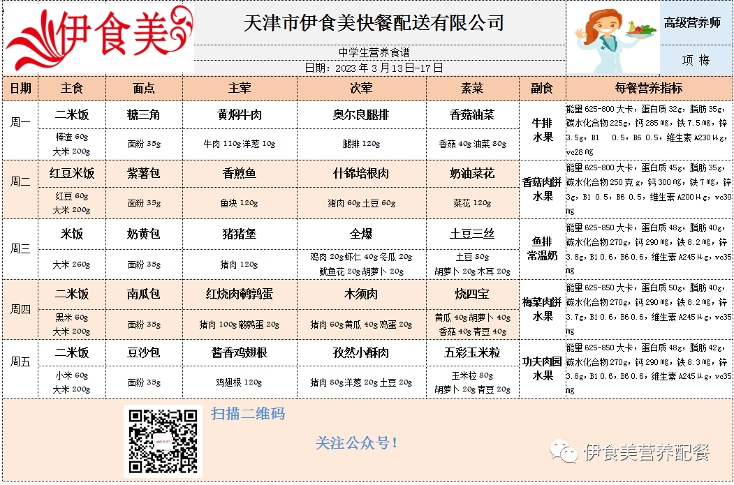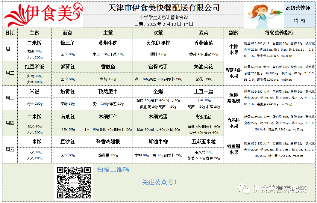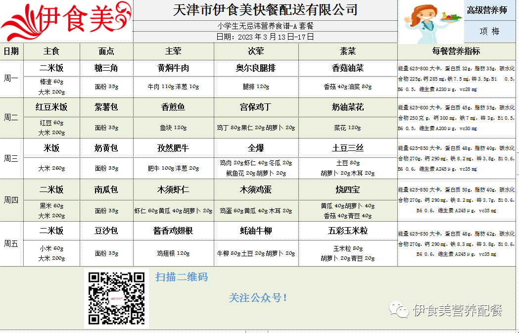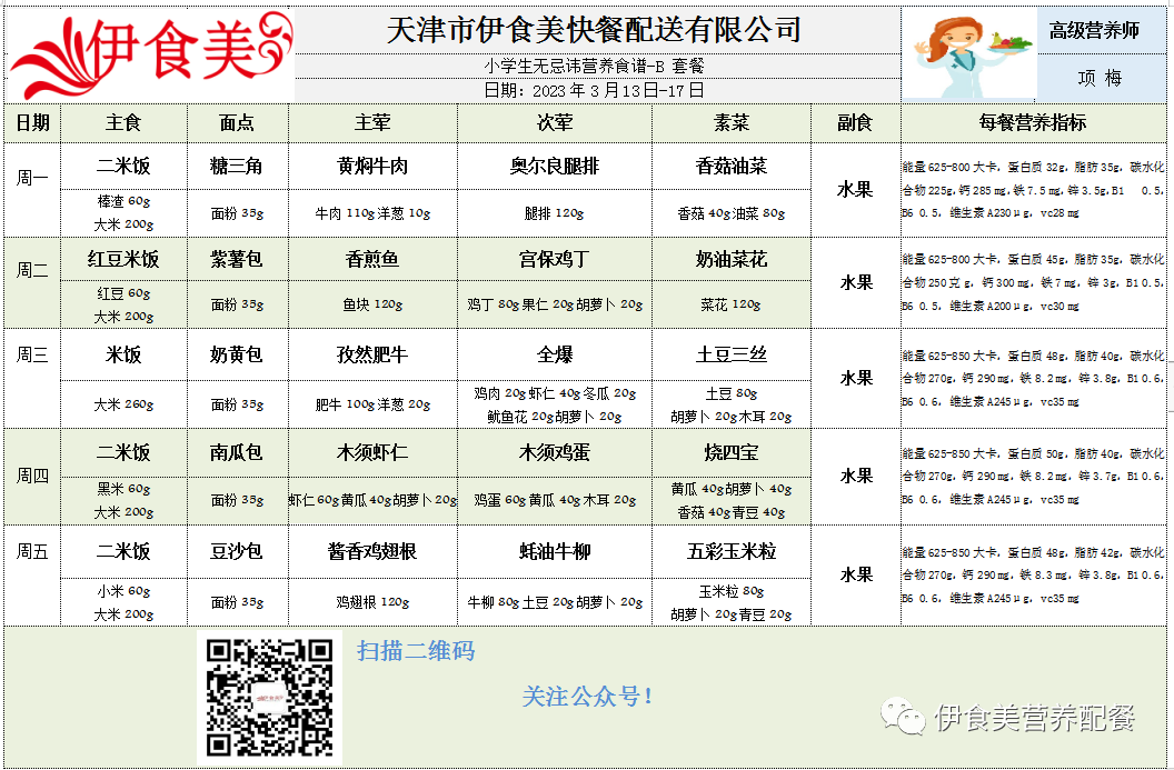 根据天气变化、市场原材料供应情况,菜品会有微调,以下菜谱展示仅供参考,具体用餐情况请以每天实际送餐为准,感谢理解!