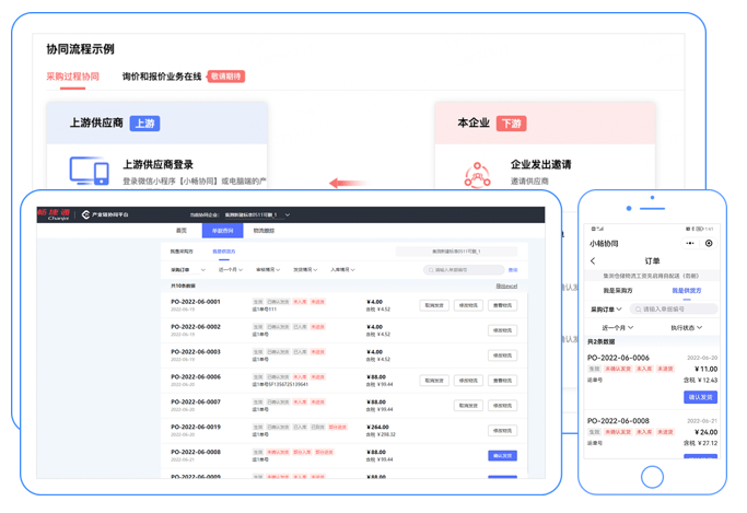 产业链上下游沟通涉及门店、总部内勤,供应商多个角色的协同和沟通,过去通过微信、电话等方式的沟通,时间耗费多,信息偏差大,采购效率低。采用小畅协同后,采购信息推送供应商,供应商平台直接发货,减少沟通成本和信息偏差,提高采购效率。